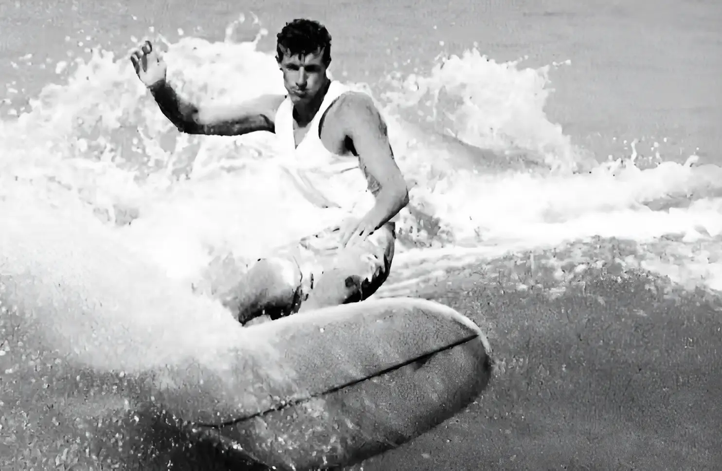 Set against the backdrop of Ocean Beach Pier, this classic composition captures a surfer in the signature Mickey Muñoz parallel stance. An illustration that reflects the style, spirit, and progression of a pivotal era in surf history.